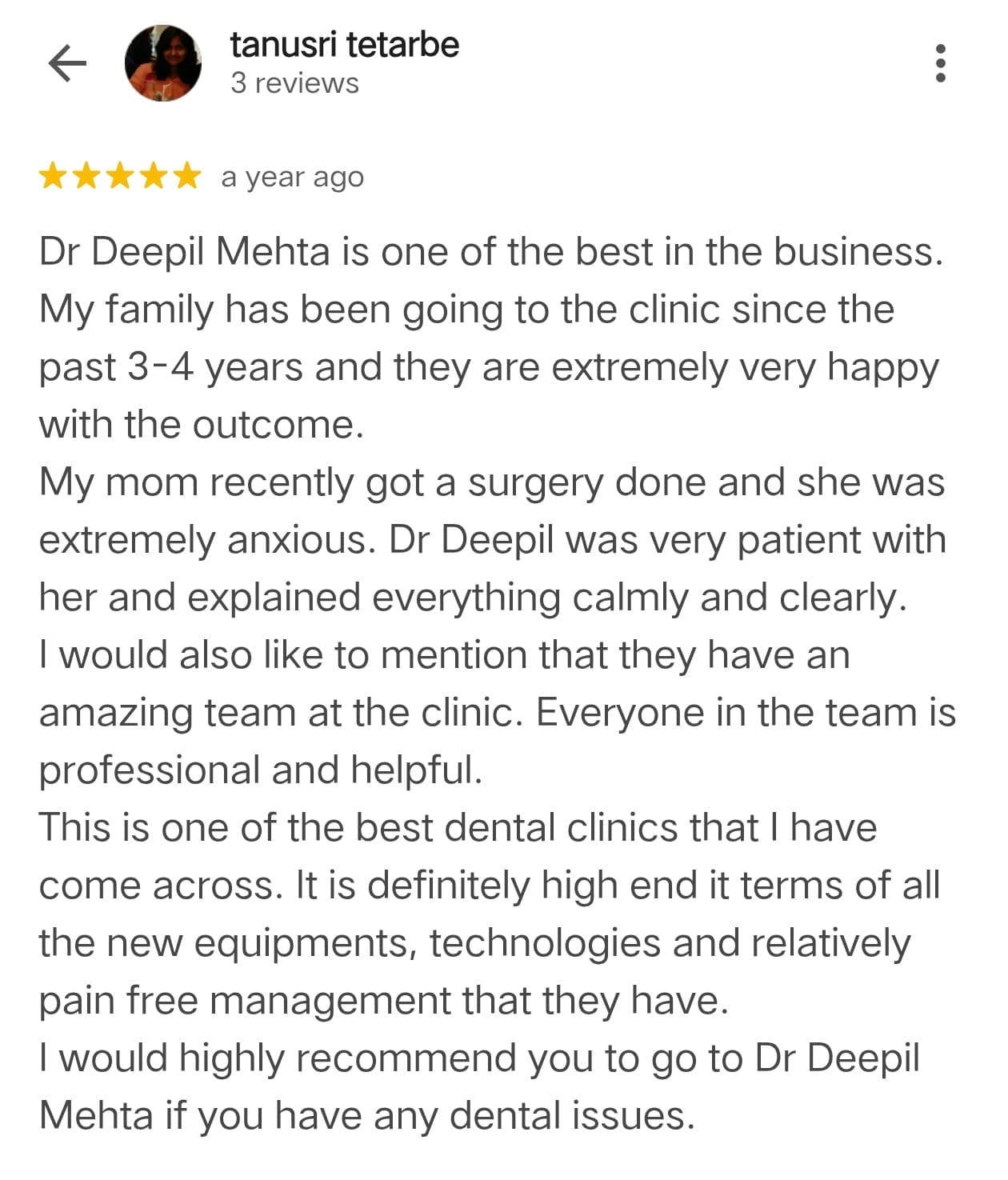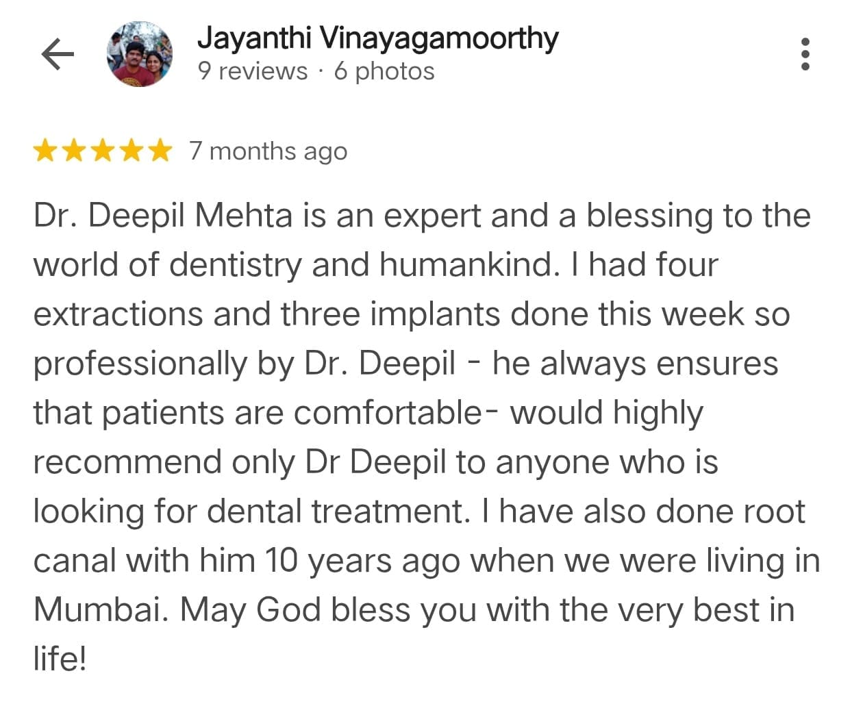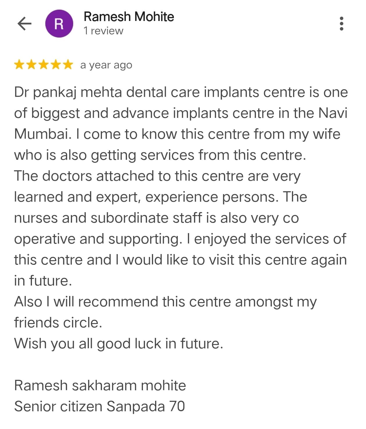For over four decades, patients across Navi Mumbai and adjoining suburbs have trusted our center for reliable dental care. A 4.9-star Google rating reflects the long-term satisfaction and confidence our patients place in us.